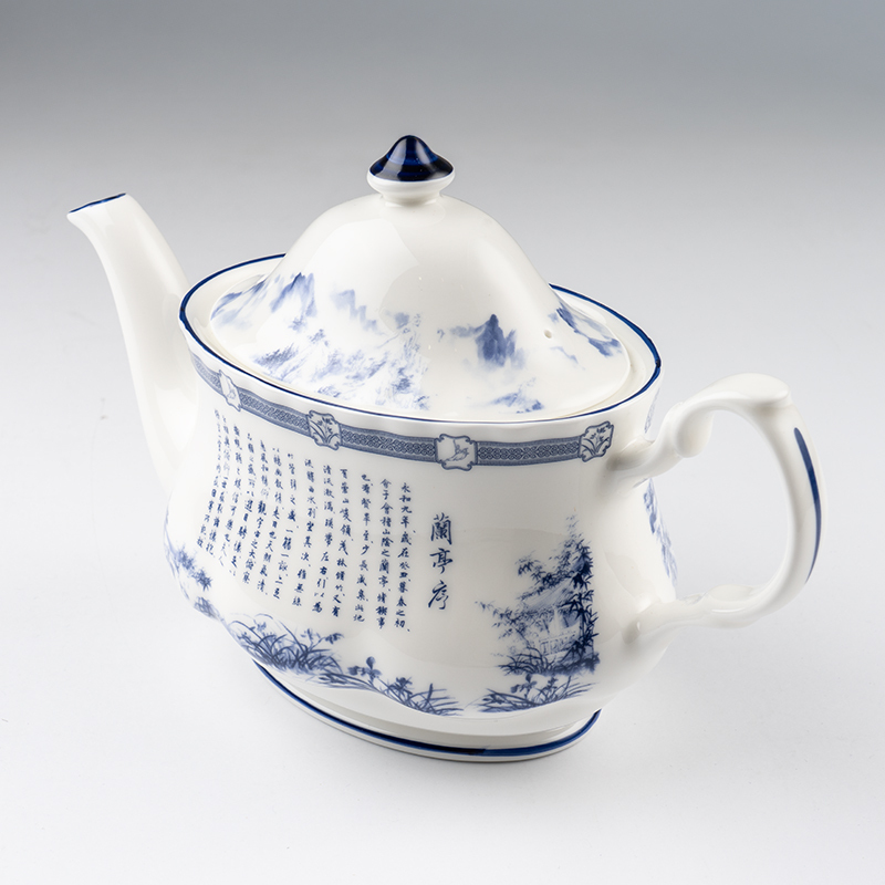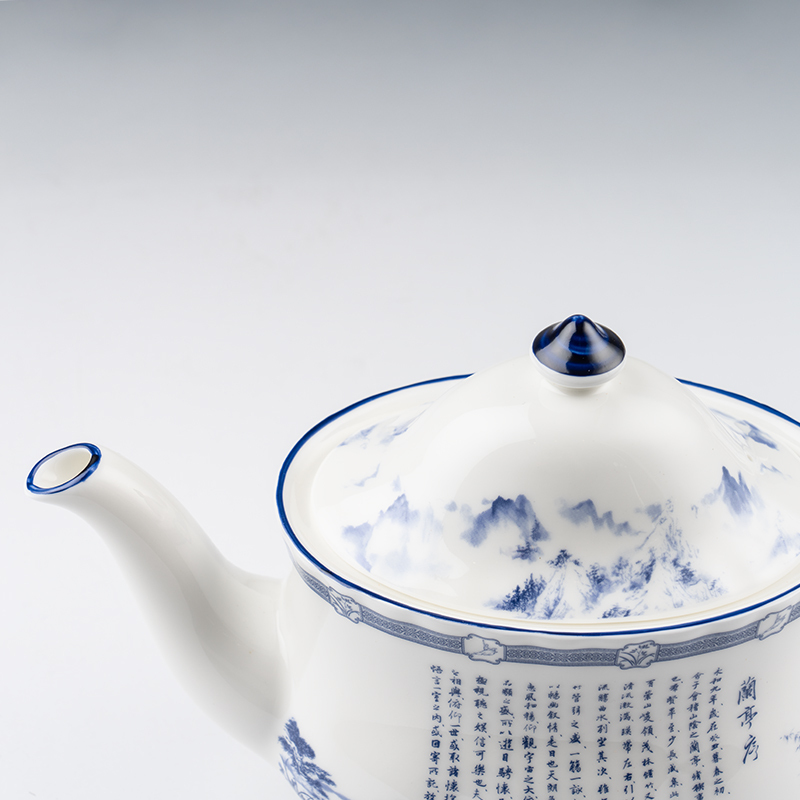 設計以東方畫風巧搭青花瓷配色來紀念被譽為天下第一行書的《蘭亭集序》,此乃書道合一的藝術典範。神韻於2016年曾演出舞蹈《蘭庭舒序》。此茶具系列於英國製作,選用骨瓷燒製,不僅給予細膩溫潤的外觀,也讓其具有更高的抗碎及耐用性,是您優雅生活儀式中值得收藏的時尚茶具。 細節 材質:優質骨瓷 尺寸:14cm x 22cm x 8.8cm 容量:600毫升 可用洗碗機與微波爐加熱 包裝:附獨立禮盒包裝 英國製造
