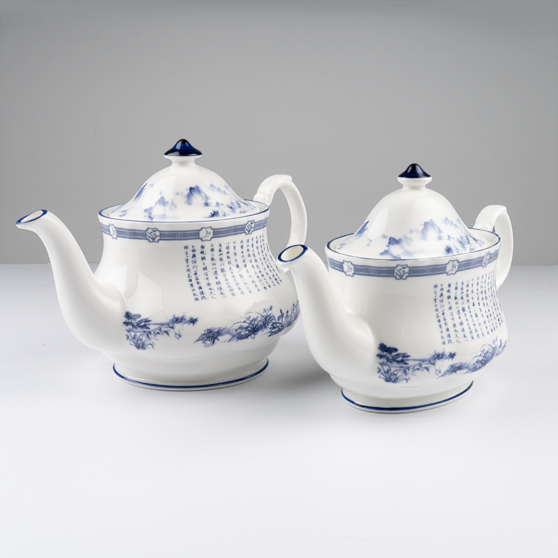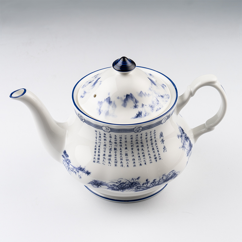 設計以東方畫風巧搭青花瓷配色來紀念被譽為天下第一行書的《蘭亭集序》,此乃書道合一的藝術典範。神韻於2016年曾演出舞蹈《蘭庭舒序》。此茶具系列於英國製作,選用骨瓷燒製,不僅給予細膩溫潤的外觀,也讓其具有更高的抗碎及耐用性,是您優雅生活儀式中值得收藏的時尚茶具。 細節 材質:優質骨瓷 尺寸:15.5cm x 22cm x 13cm 容量:1000毫升 可用洗碗機與微波爐加熱 包裝:附獨立禮盒包裝 英國製造