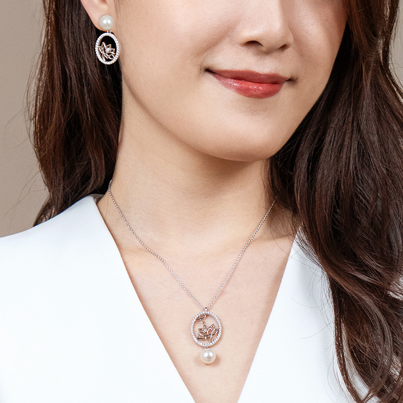 蓮花從泥中升起,綻放出潔淨的花朵,長久以來一直是高雅與聖潔的象徵。此款項鍊的設計靈感源自神韻舞蹈《蓮花仙子》,以精美的蓮花吊飾來襯托您優雅內斂的光彩。
