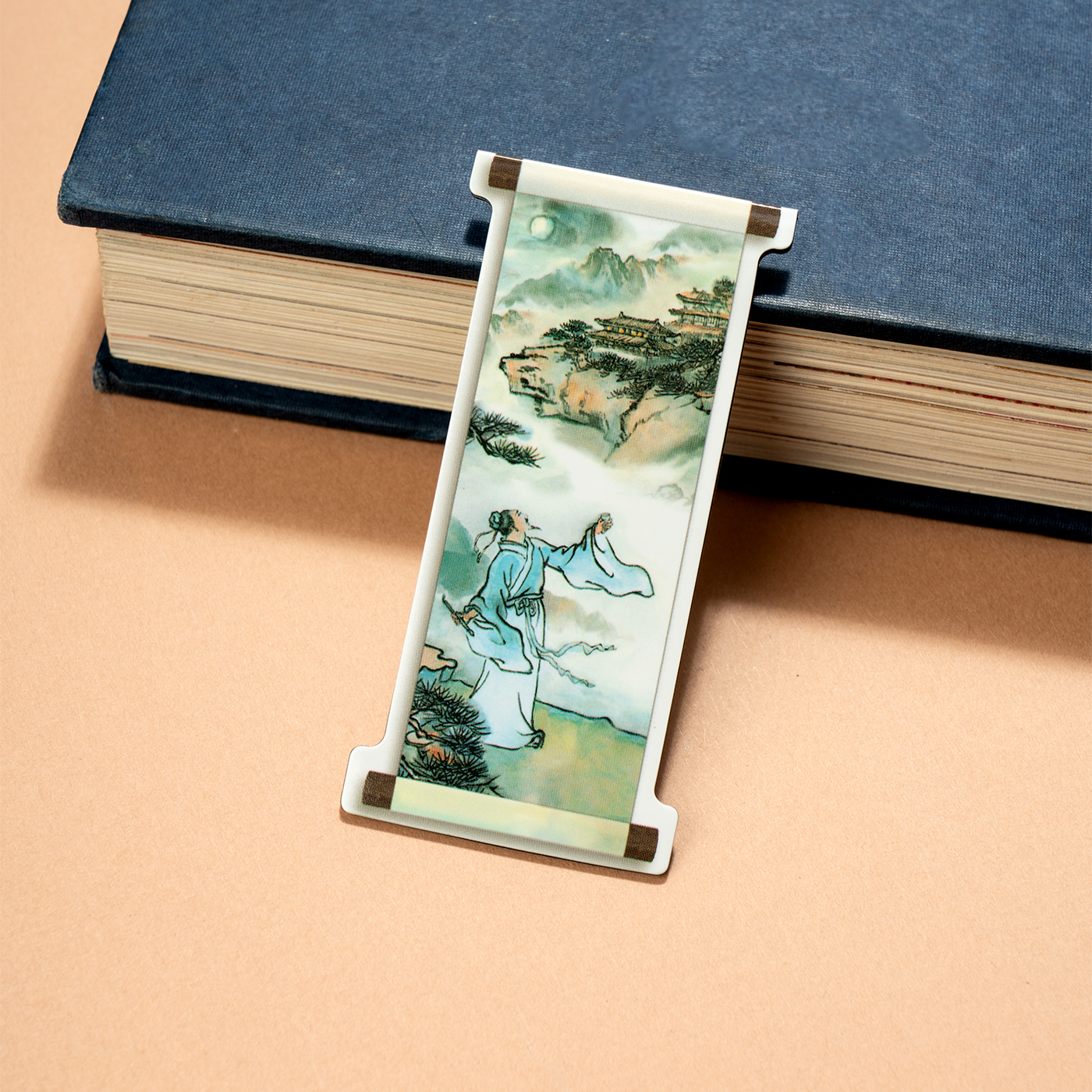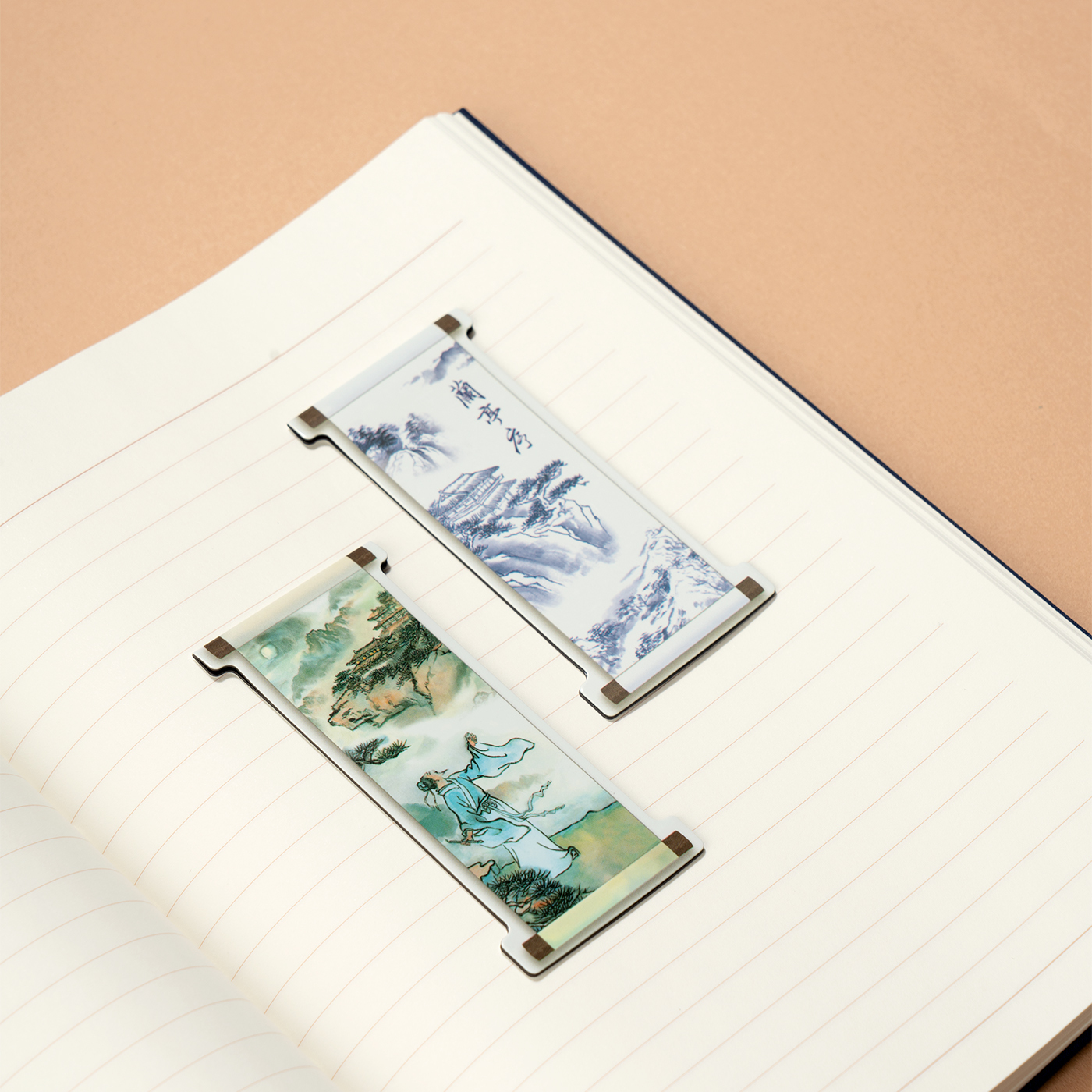 靈感源自神韻歷年以古代著名詩人為主題的舞蹈作品。此書籤組合的兩款設計將經典的山水畫風與優雅的捲軸造型結為一體,以紀念書聖王羲之所作的天下第一行書《蘭亭集序》,以及詩仙李白的名作之一《月下獨酌》中的優美詩句,願其為您美好的閱讀時光增添寧靜致遠的超凡氣息。