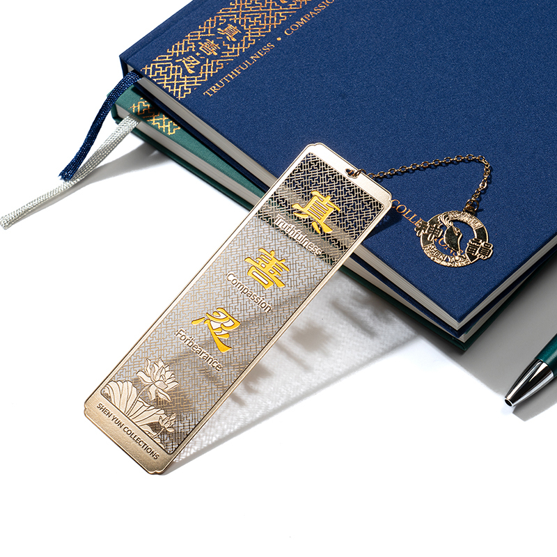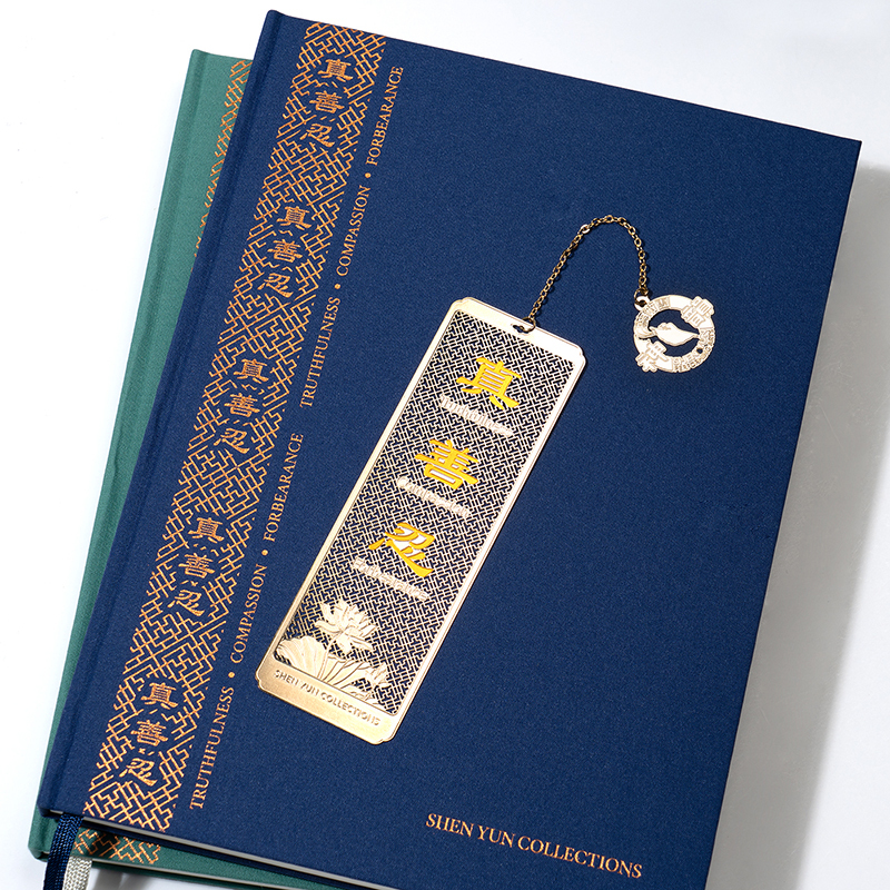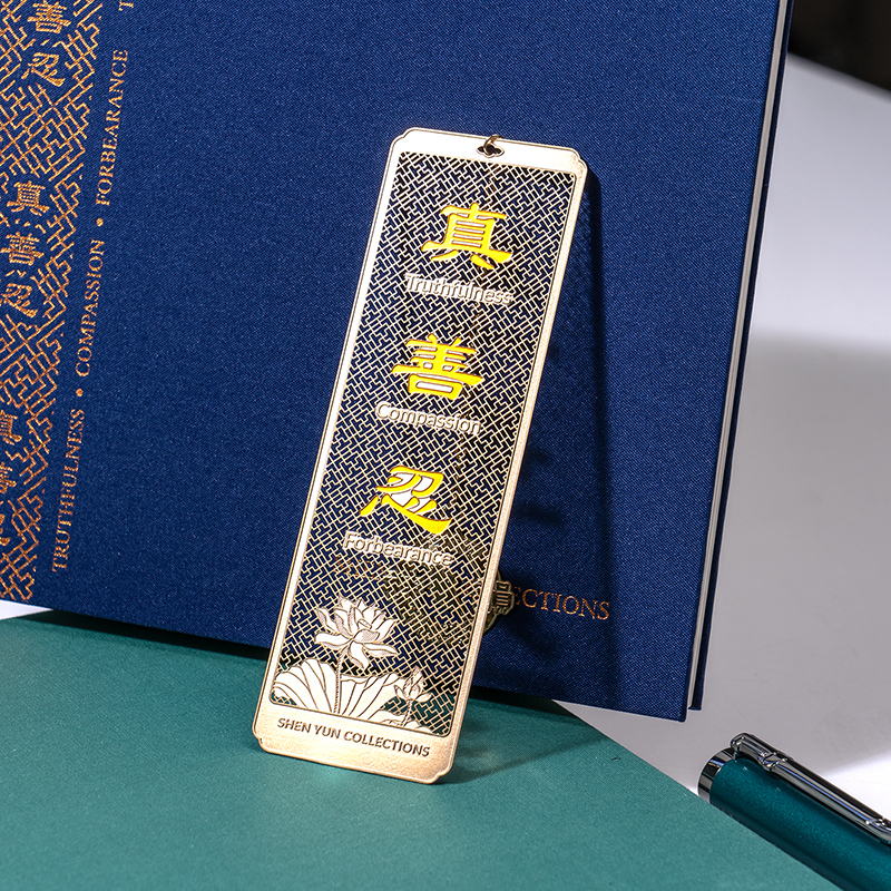 真善忍書籤-藍、橘、紫、黃 為紀念神韻舞蹈作品中所傳達的法輪大法非凡價值觀──真、善、忍。此款書籤以聖潔的蓮花 襯托優雅的字樣為設計,願「真、善、忍」照亮您的每一天,為您帶來美好的未來。
