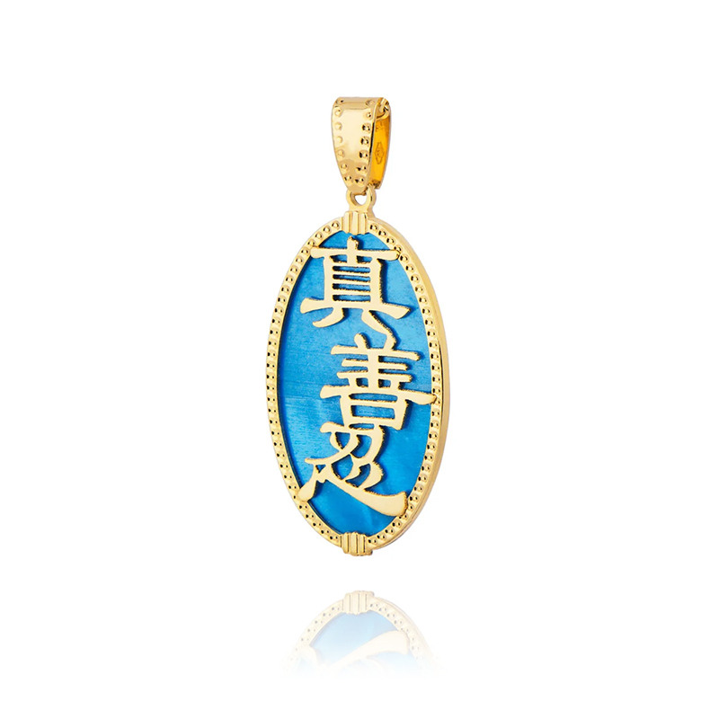 Zhen Shan Ren Words Pendant 14kt with white MOP